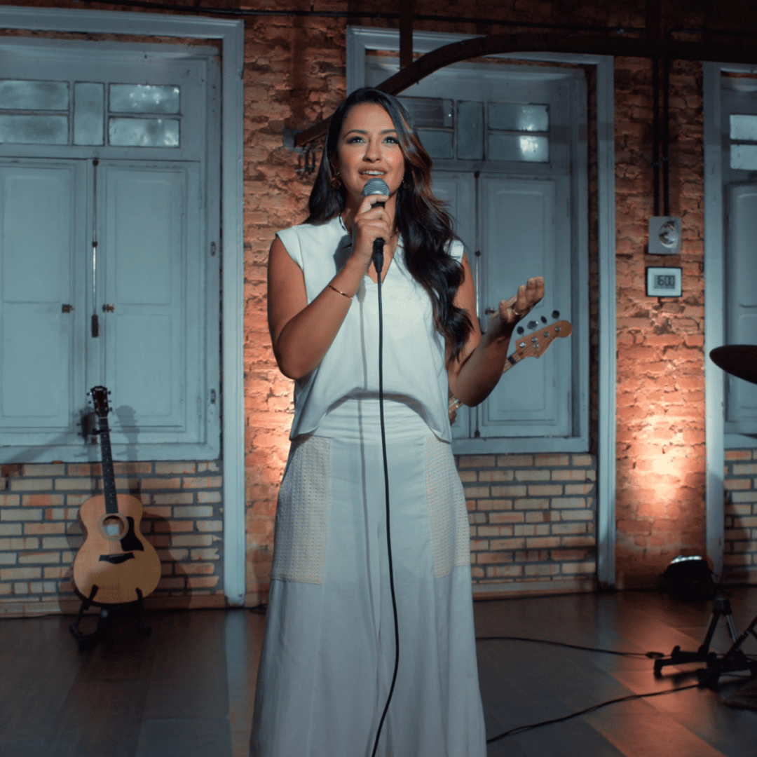 Com uma mensagem de profunda gratidão, a cantora exalta o Senhor e leva as pessoas a cantarem fazendo o mesmo.
